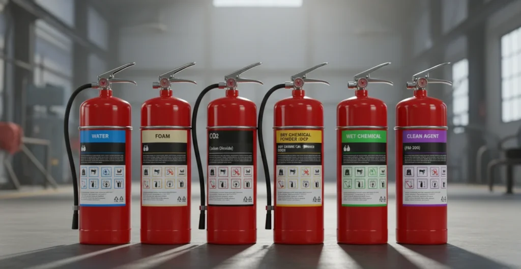 We provide water, foam, CO₂, dry chemical powder (DCP), ABC( Class A (solids like wood/paper), Class B (flammable liquids), and Class C (electrical), wet chemical, and clean agent (FM-200, Novec 1230) fire extinguishers suitable for residential, commercial, and industrial use.