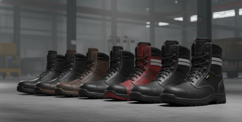 Sturdy safety footwear designed for maximum protection in fire-prone environments.