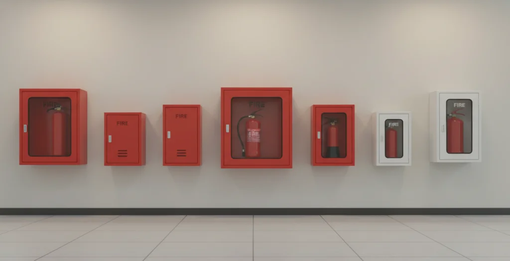 Fire extinguisher cabinets protect extinguishers from damage and ensure easy accessibility.