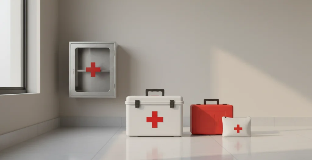 Fully equipped with bandages, antiseptics, and emergency supplies