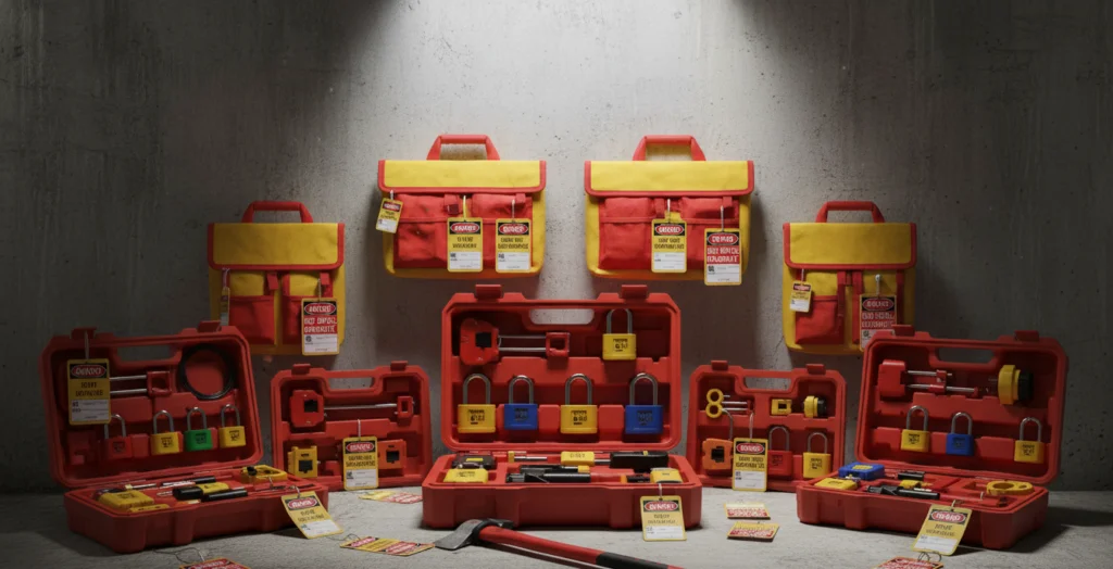 Lock-out / Tag-out (LOTO) kits ensure machinery and electrical systems are safely de-energized before maintenance or repair.