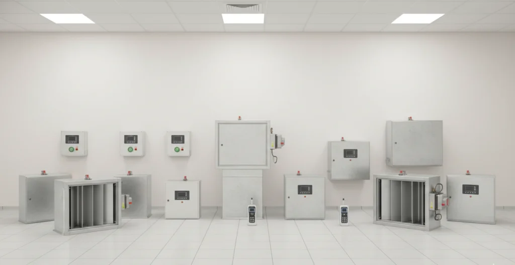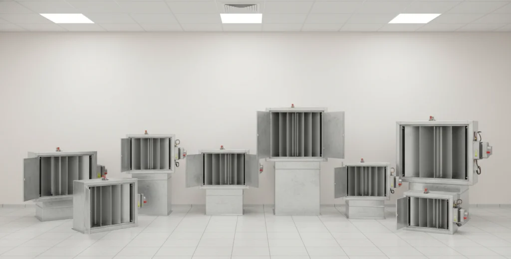 - Fire dampers are mandatory for fire code compliance in industrial and commercial buildings.
