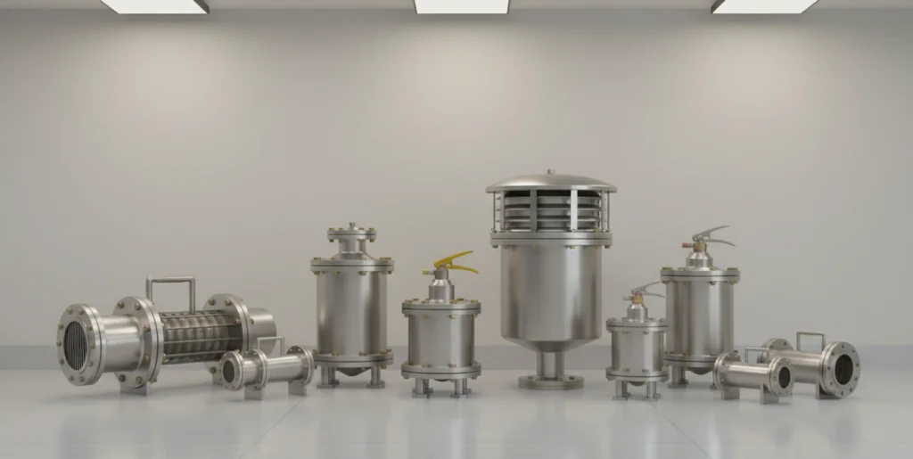 Flame arrestors prevent flame propagation in pipelines and storage systems, ensuring fire containment in flammable environments.